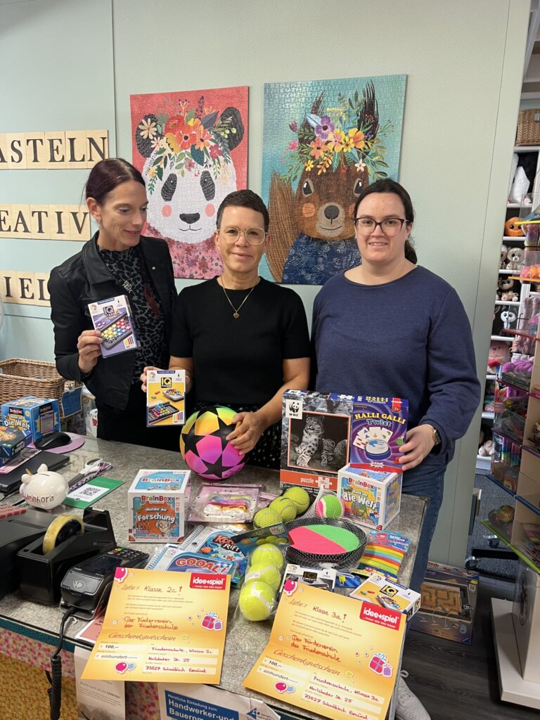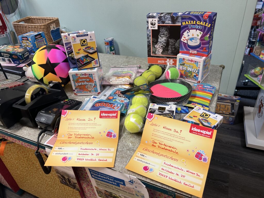 Die beiden Klassenlehrerinnen Frau Bernlöhr und Frau Knecht haben zum neuen Schuljahr die Gutscheine gegen einige tolle Spiele und Bastelmaterialien für Ihre Klassen eingetauscht.