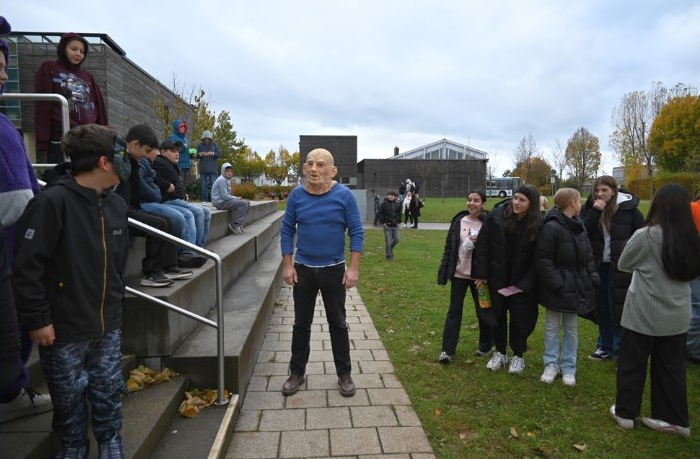 Gruseltag an unserer Schule Am 24. Oktober veranstaltete unsere SMV ihre erste Aktion und sorgte für schaurig gute Stimmung –Gruseltag.Schülerinnen und Schüler, aber auch Lehrerinnen und Lehrer kamen gruselig verkleidet.In der großen Pause wurde ein Gruppenfoto mit allen Verkleideten gemacht, die Lust dazu hatten.Danke an die SMV für diese schaurige Idee, die perfekt in die Ferien geführt hat!Wer steckt eigentlich hinter der Maske?