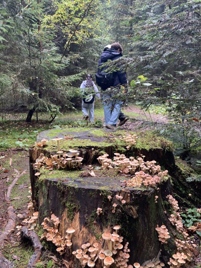 Schülerinnen und Schüler, die im Nebel kaum noch zu sehen sind, das Knirschen von Eicheln unter den Schuhen, Pilze aller Art und mitten drin die Klasse 9c. Das sind nur ein paar Eindrücke des herbstlichen Waldtages am 10. Oktober 2025. Mithilfe von Landkartenteilen lotsten sich die Jugendlichen gegenseitig vom Rehnenhof über Waldau nach Großdeinbach. Auf den Feldwegen und im Wald von Großdeinbach absolvierte die 9c unterschiedliche Gruppenspiele. Nach rund 10.000 Schritten war bei vielen die Erkenntnis vorherrschend: „Krass, ich habe heute Orte gesehen, da war ich noch nie.“ (Franziska Banz)